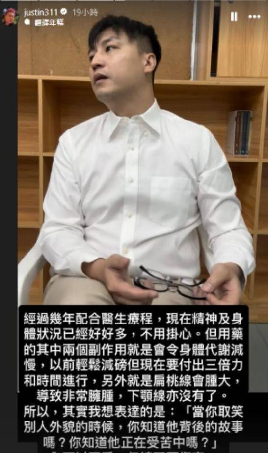 42岁的香港演员张建声最近因为一段视频登上热搜。镜头里的他右脸明显肿胀变形,手指着凸起的部位痛到爆粗口,连说话都带着哭腔:“真的好痛!不知道是口水腺还是腮腺炎,整个人都懵了。”这秒的视频让网友心疼不已,要知道他刚从抑郁症、焦虑症和人格解离症的泥潭里爬出来,如今身体又亮红灯。